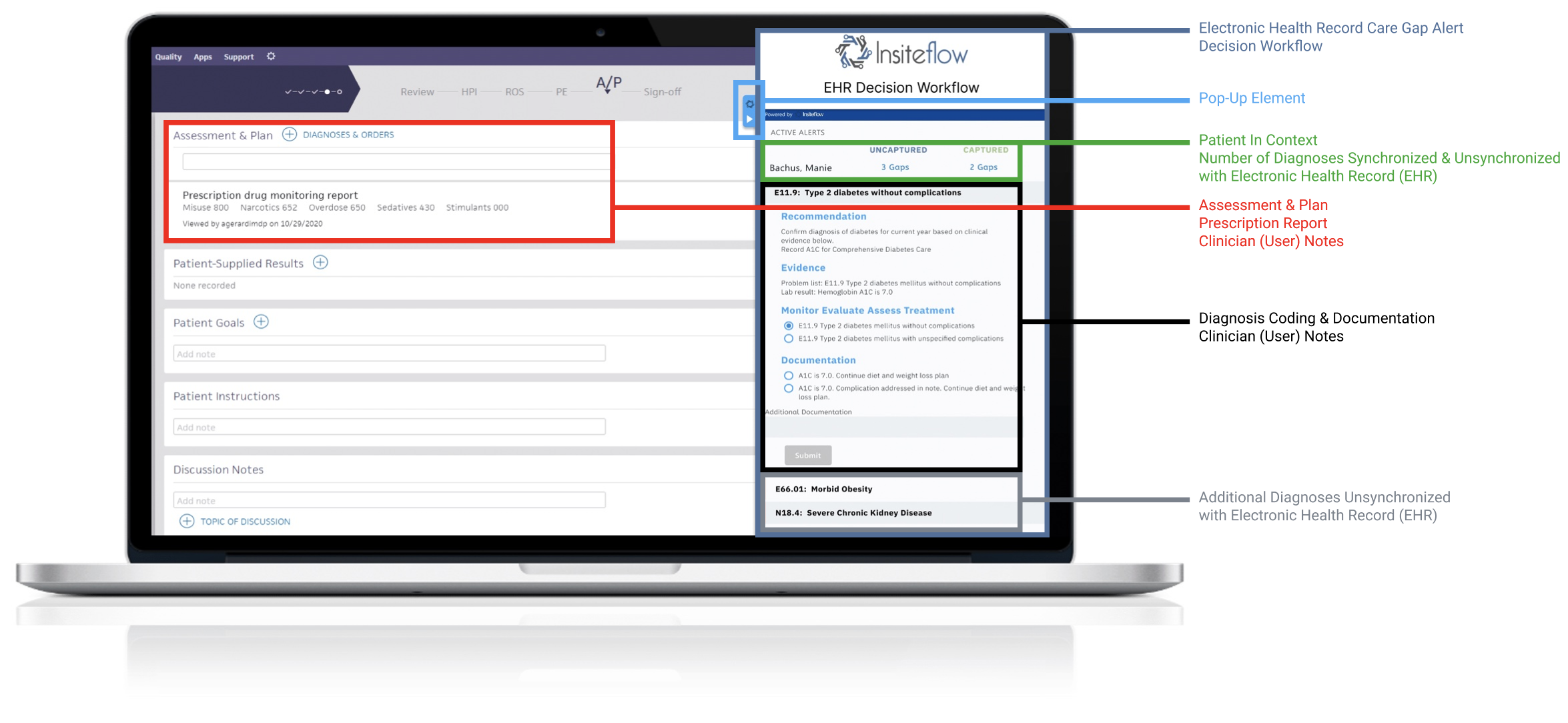 Our company strives to make patient charting easy and accessible by providing a pop-up interface that allows users to input patient data into it and synchronize the data inputted directly into the Electronic Health Record.